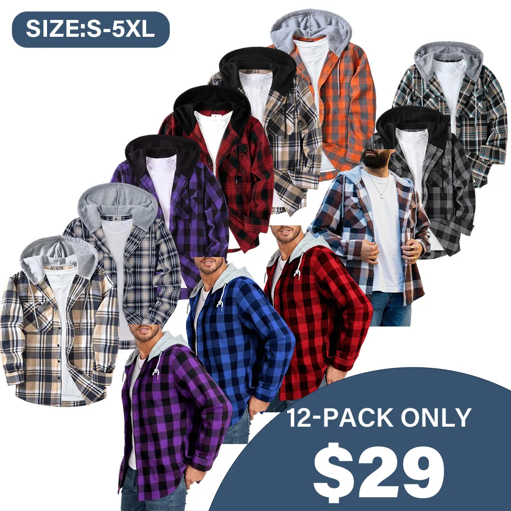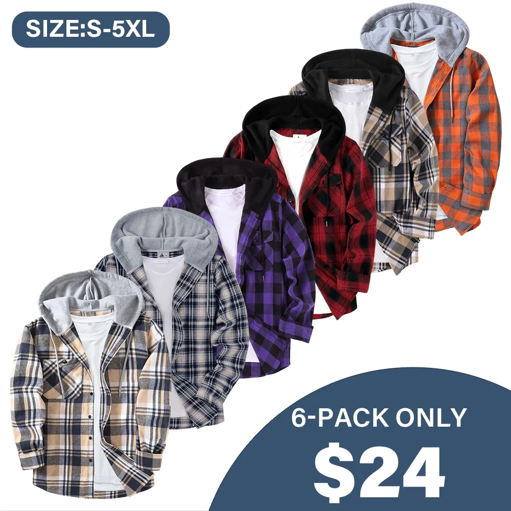 Men's Plaid Hooded Plaid Shirt