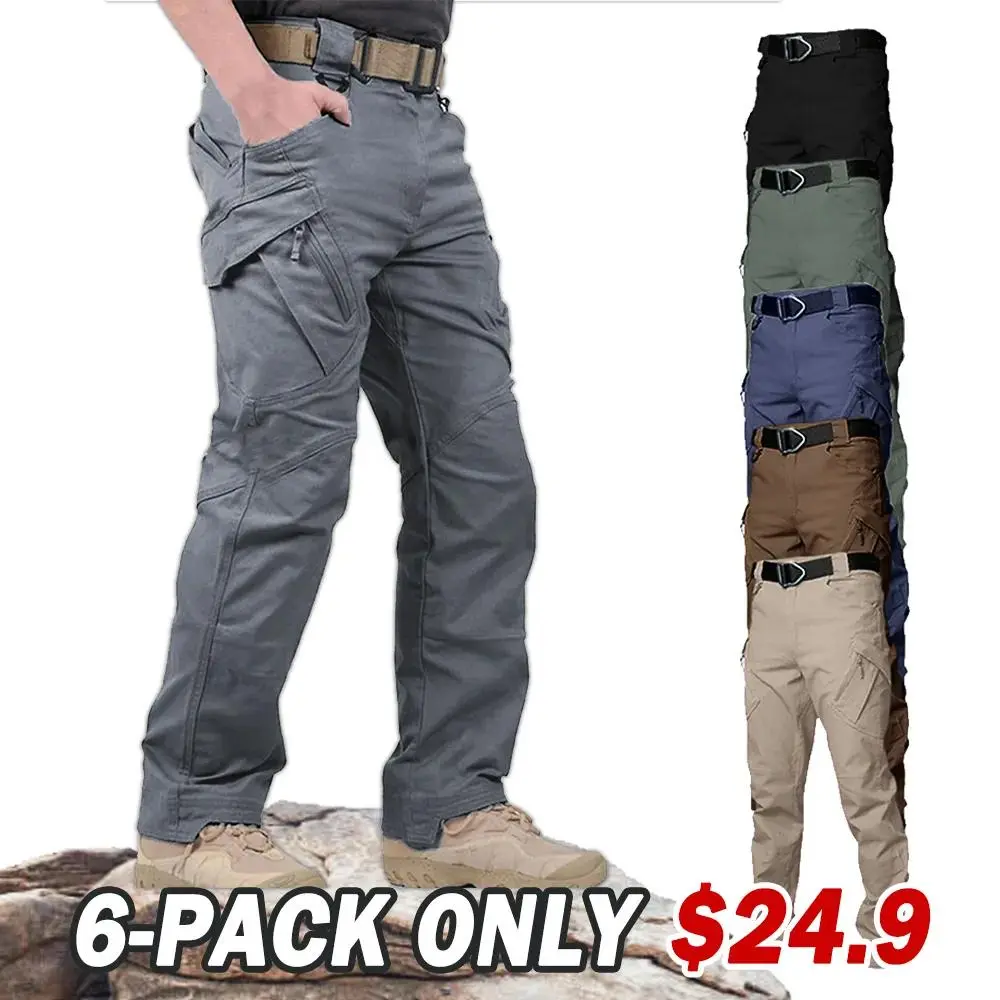 Men's Tactical Waterproof Pants Military Cargo Pant Ripstop Lightweight Outdoor Hiking Trouser 6 Pack
