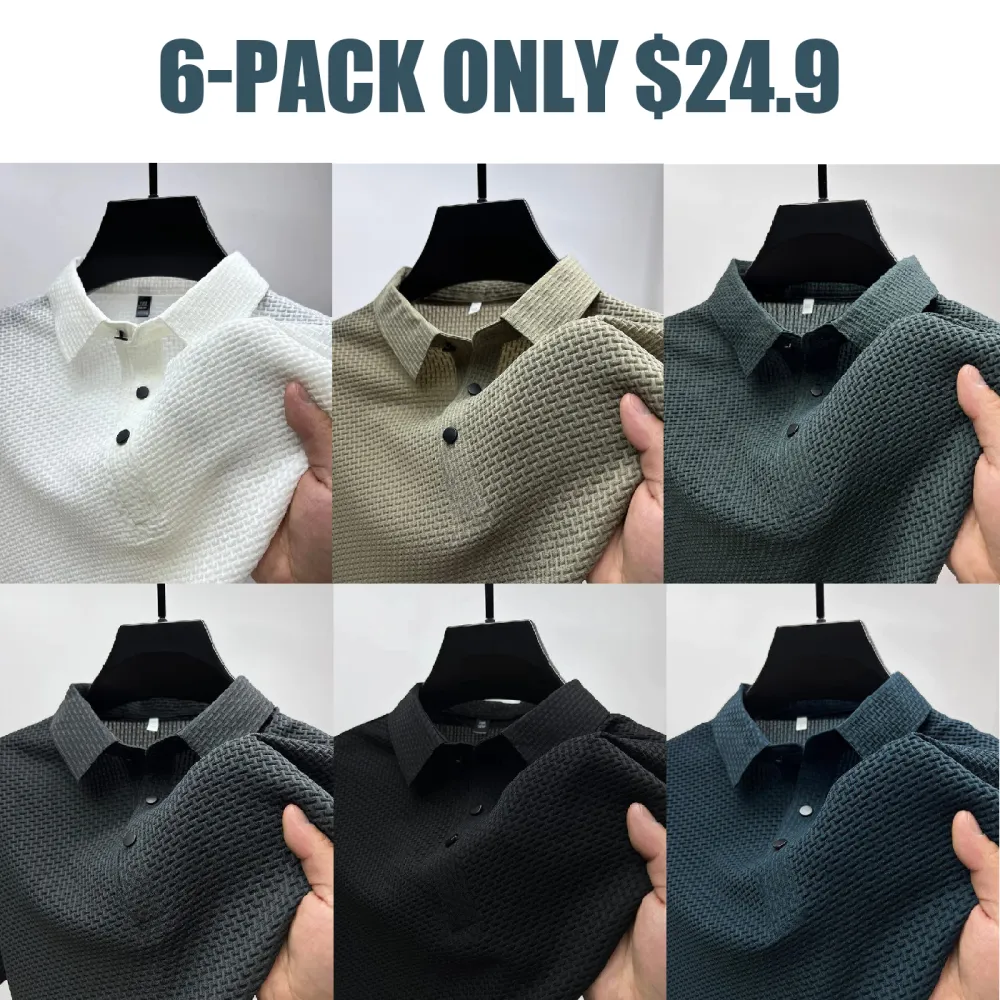 🔥 10-Piece $29 6-Piece $24 Men'S Long-Sleeved Polo Shirt Pullover With Washed And Distressed Finish