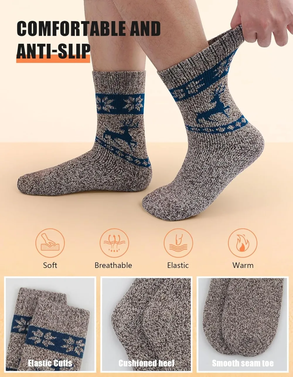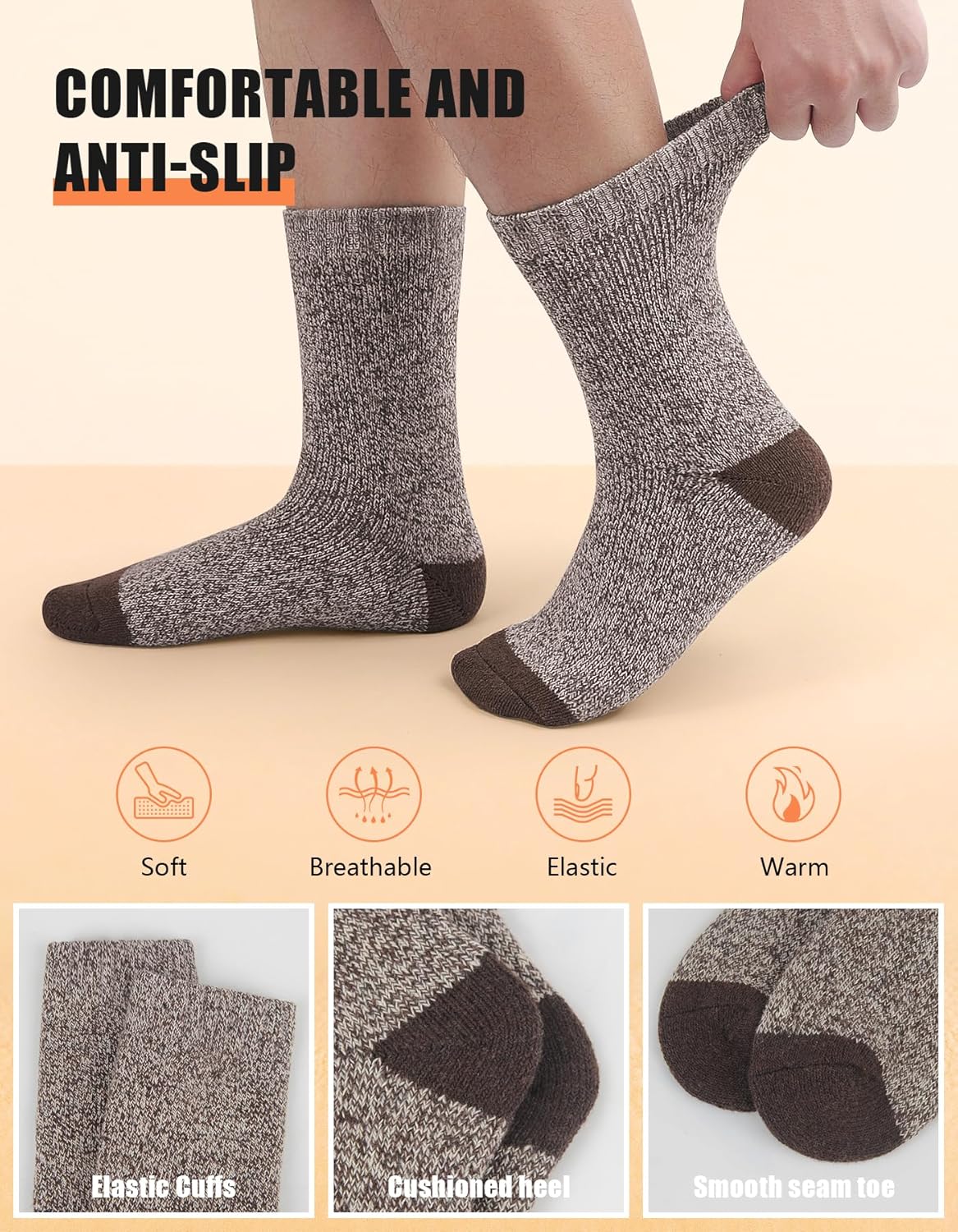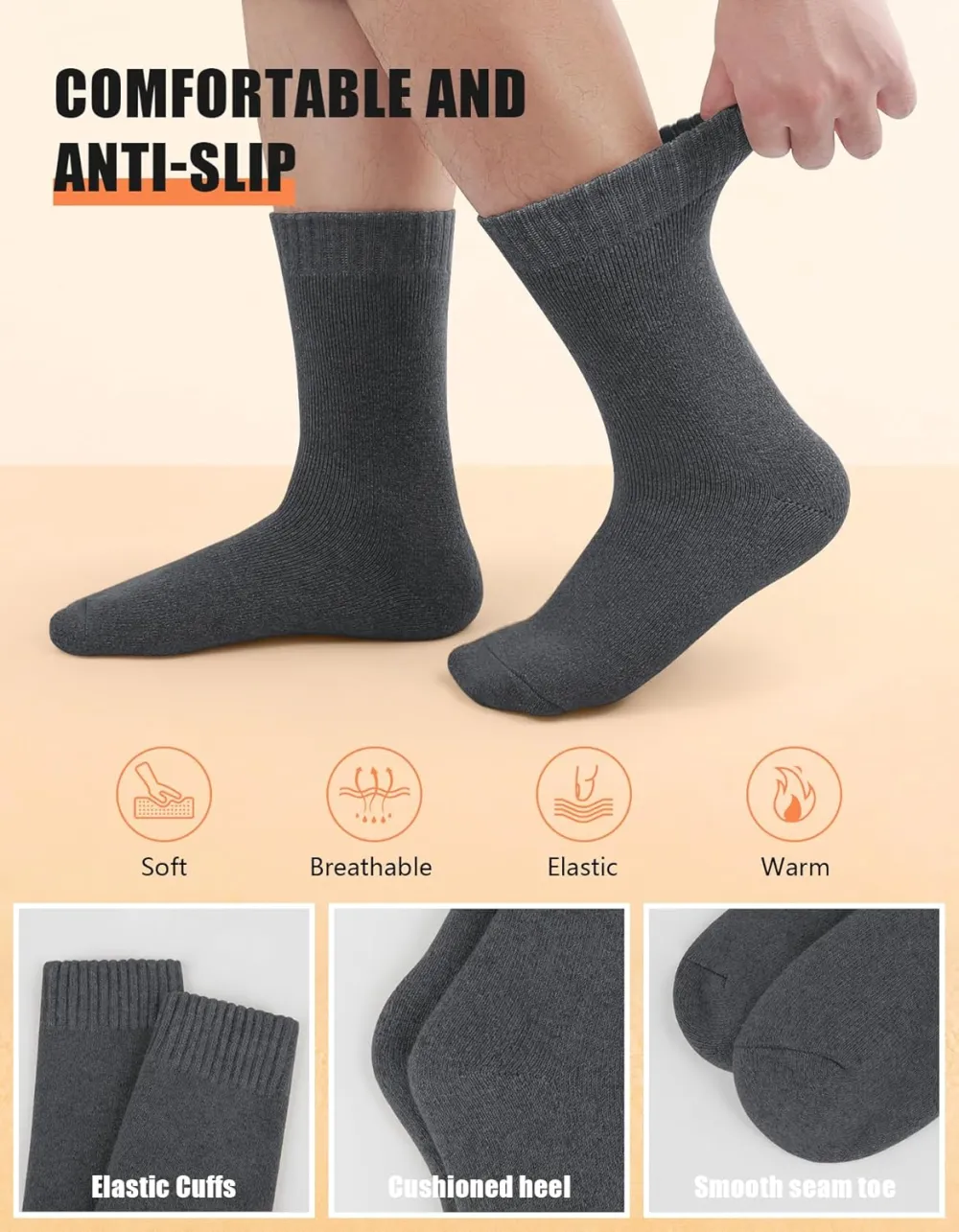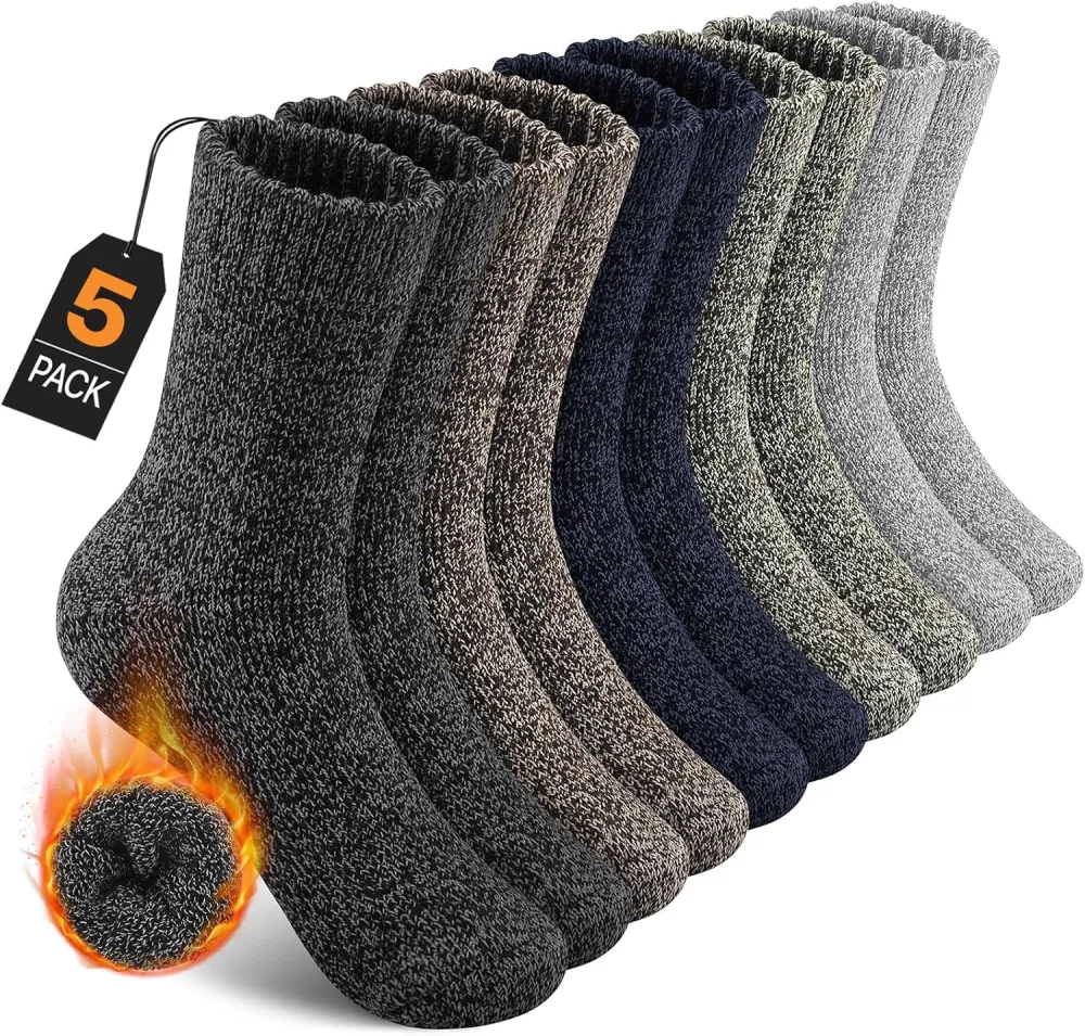 Superior Craftsmanship: Utilizing towel loop knitting technology, our mens winter socks are thick and durable, providing excellent cushioning and relieving pressure on the soles of your feet and promoting a cozy wearing experience.