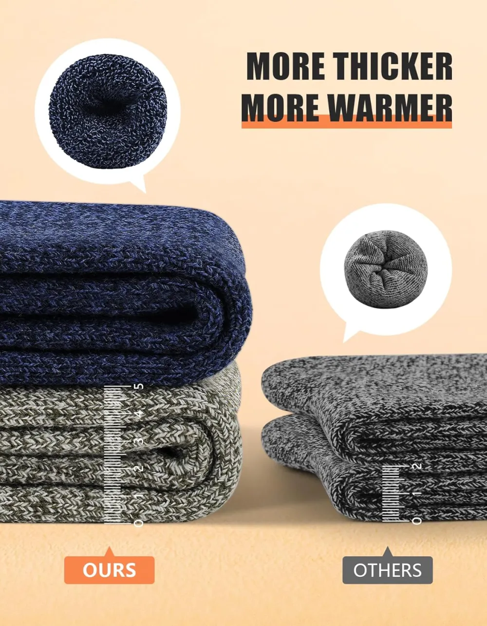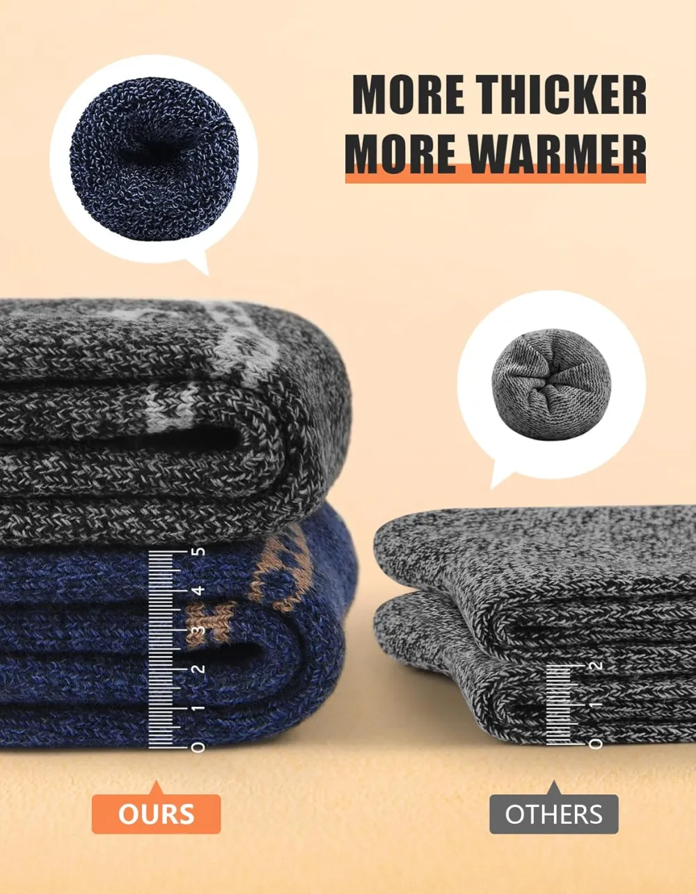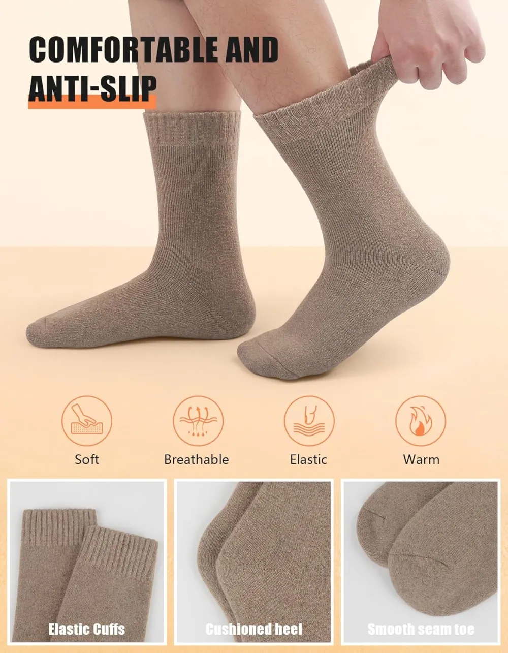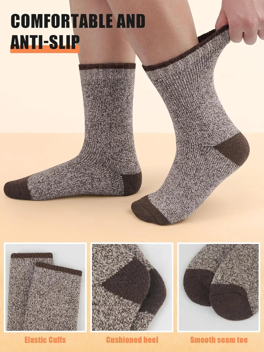 Superior Craftsmanship: Utilizing towel loop knitting technology, our mens winter socks are thick and durable, providing excellent cushioning and relieving pressure on the soles of your feet and promoting a cozy wearing experience.