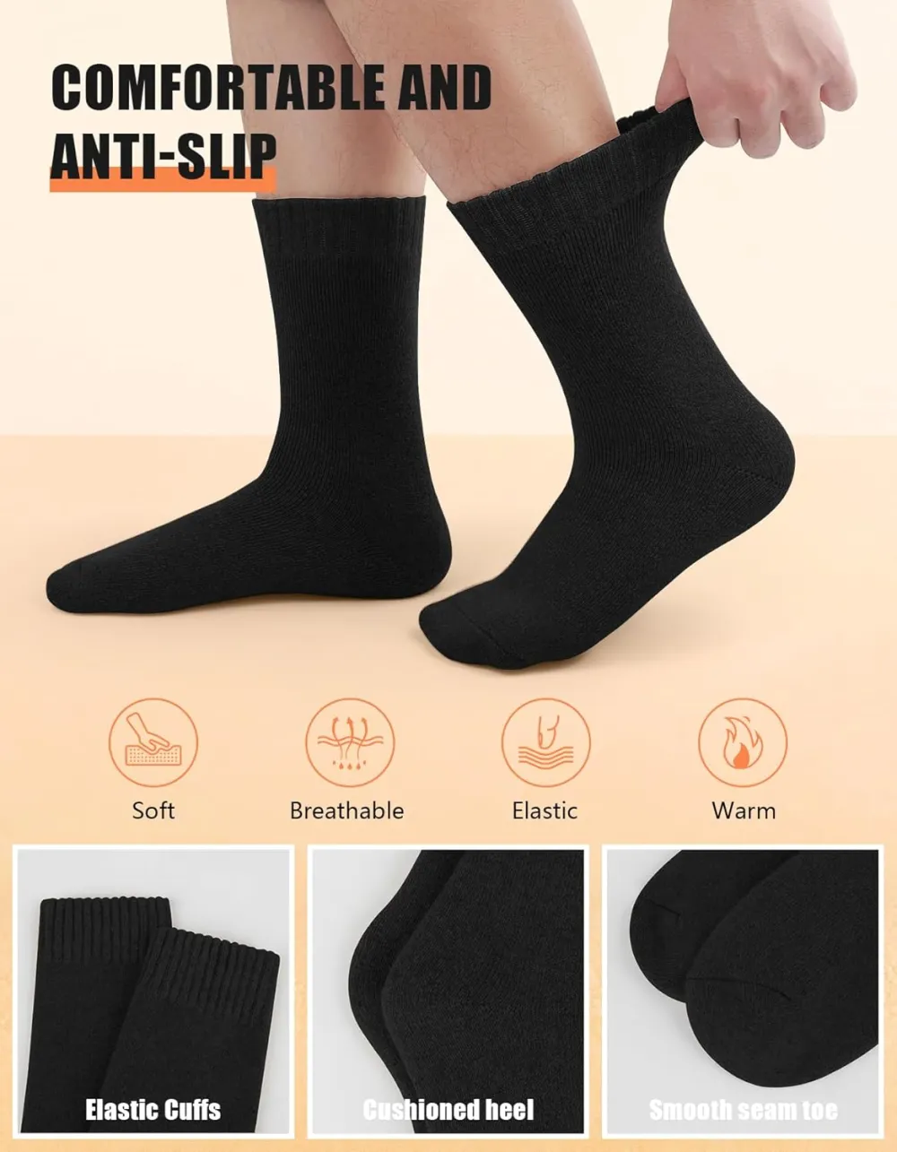 Multi-purpose Usage: Our mens warm socks serve multiple purposes, making them a versatile addition to your wardrobe. Whether you need warm socks for cold weather, or floor socks for indoor activities, these socks are designed to meet all your needs.