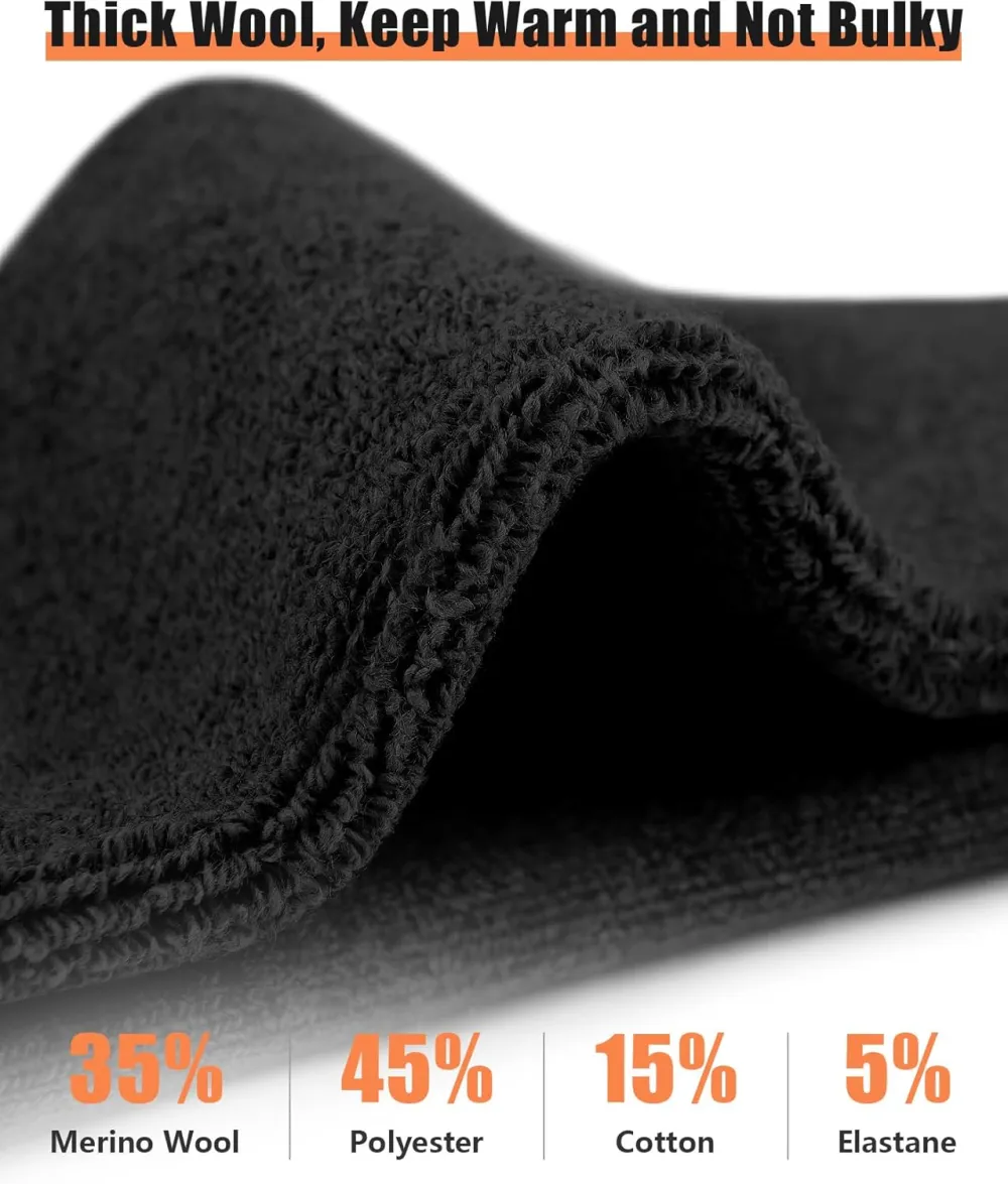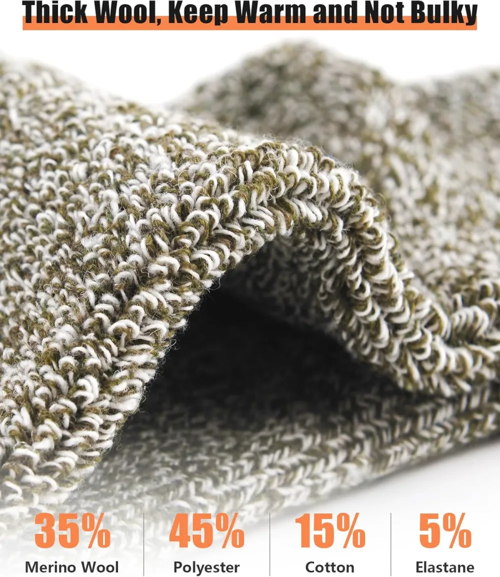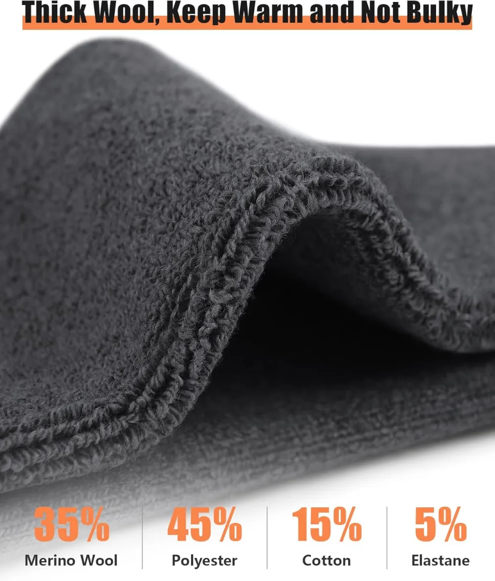 High-quality Material: Our mens merino wool socks are made of a blend of wool and cotton, ensuring high warmth retention and breathability. The premium material also prevents foot odor, keeping your feet fresh and comfortable throughout the day.