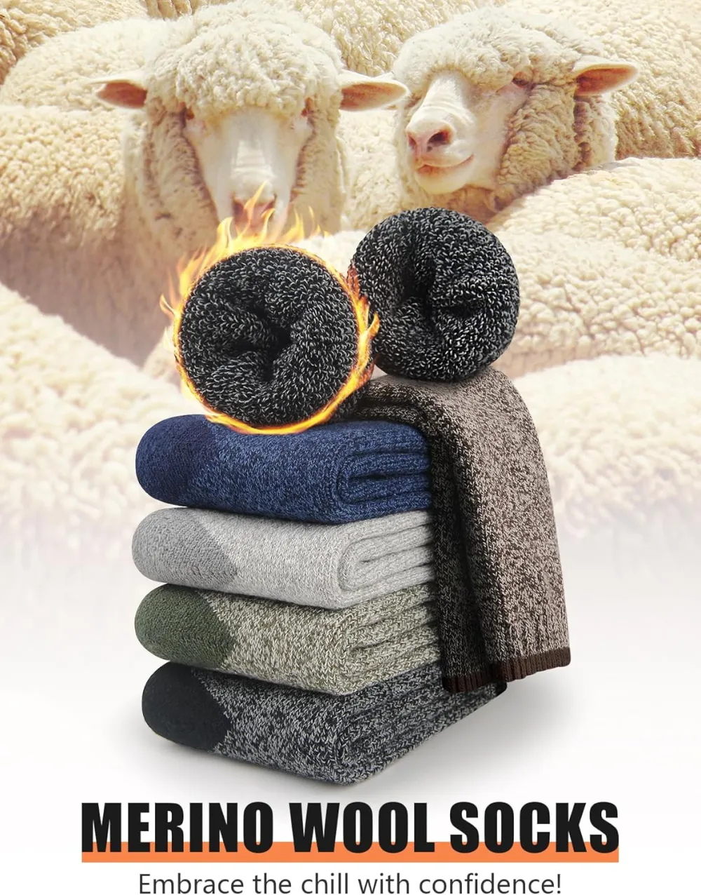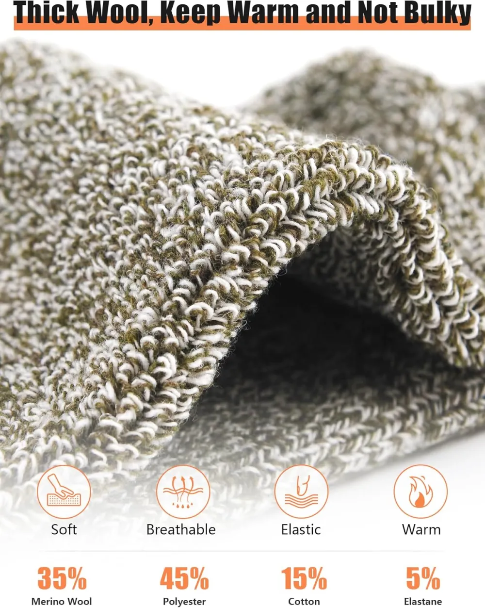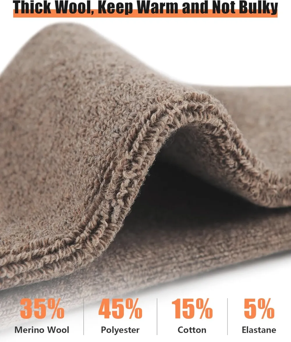 High-quality Material: Our mens merino wool socks are made of a blend of wool and cotton, ensuring high warmth retention and breathability. The premium material also prevents foot odor, keeping your feet fresh and comfortable throughout the day.
