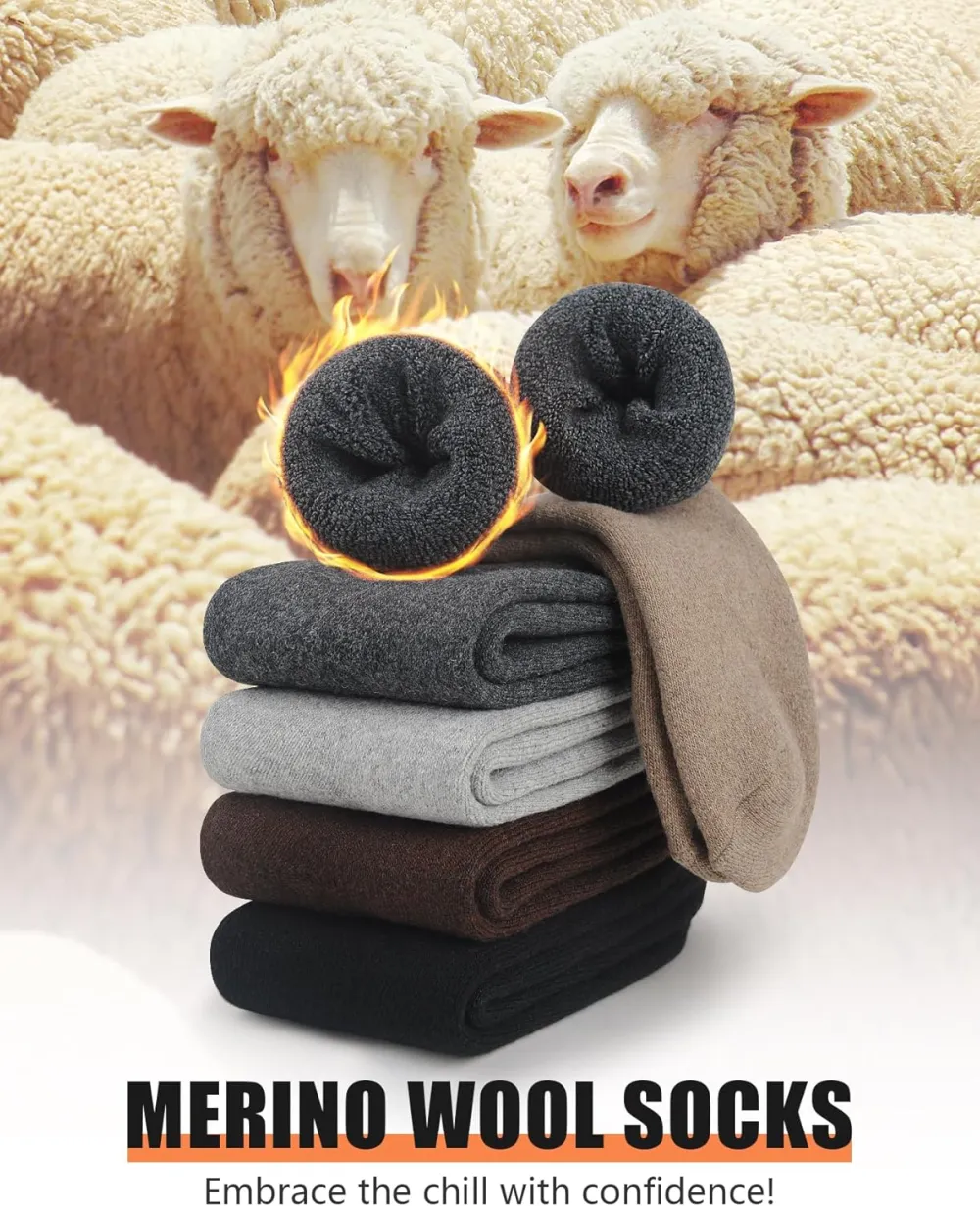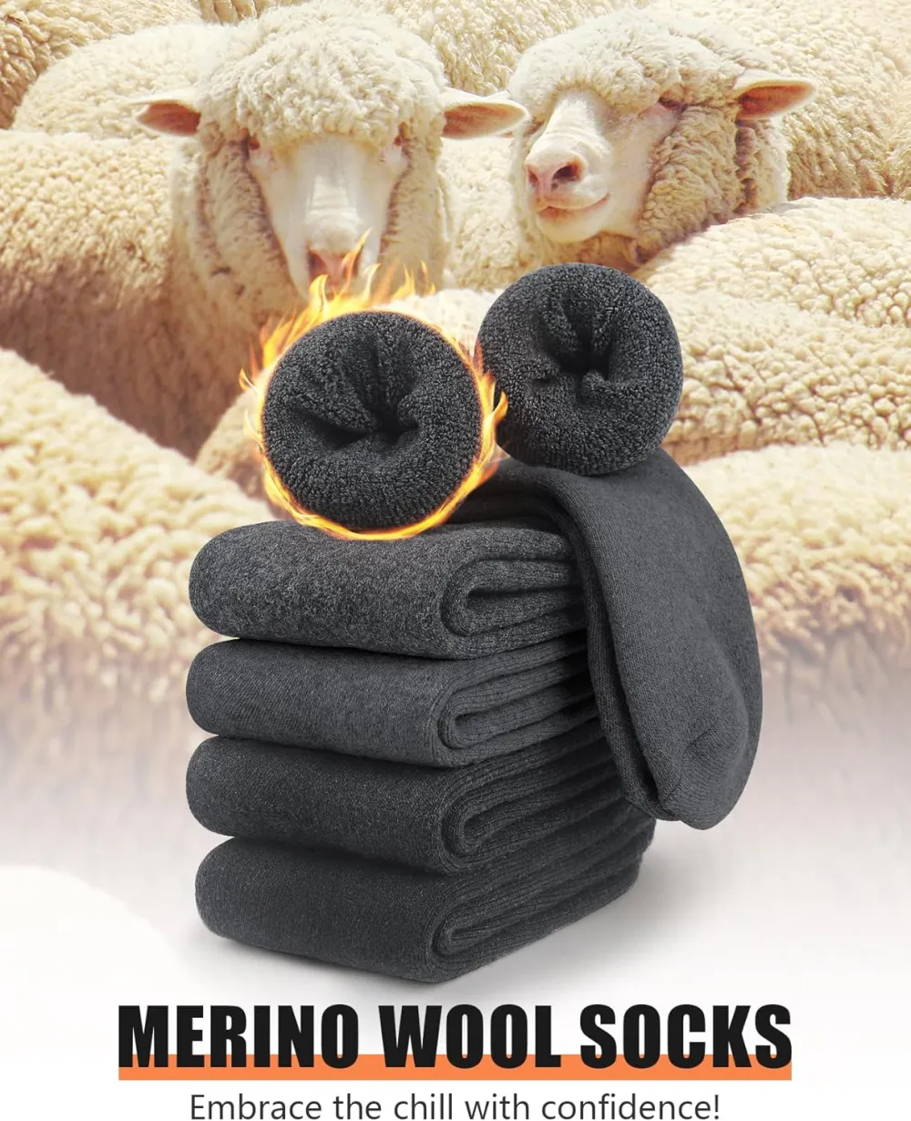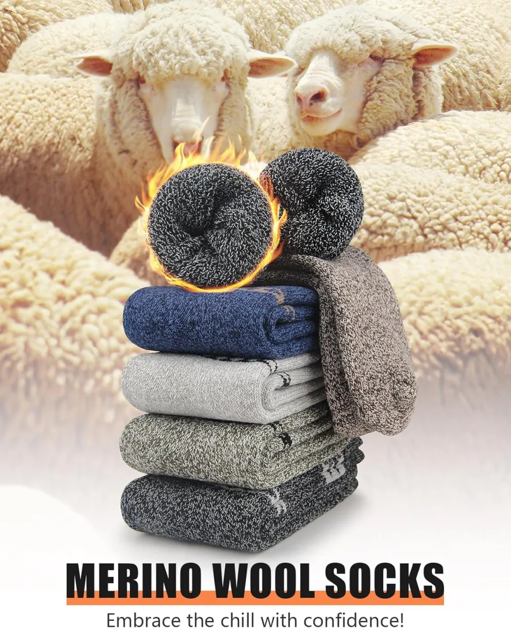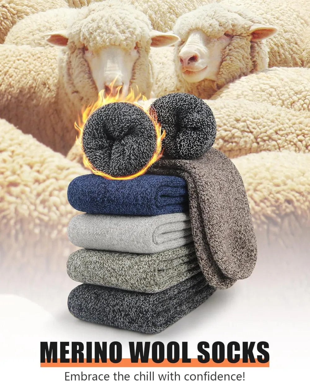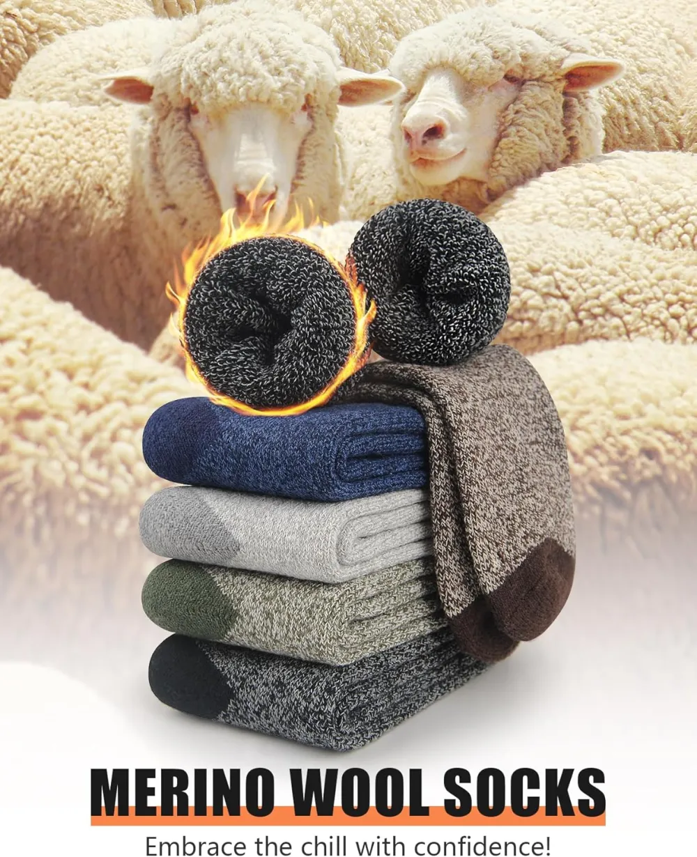 Perfect for Winter: With their merino wool composition, our thick socks for men are ideal for winter wear. They offer exceptional insulation and heat retention, ensuring that your feet stay warm and cozy even in the coldest temperatures.