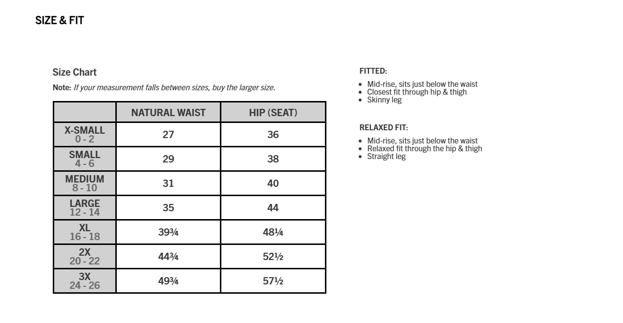 - Mid-rise sits just below the waist with a relaxed fit through the seat and thigh