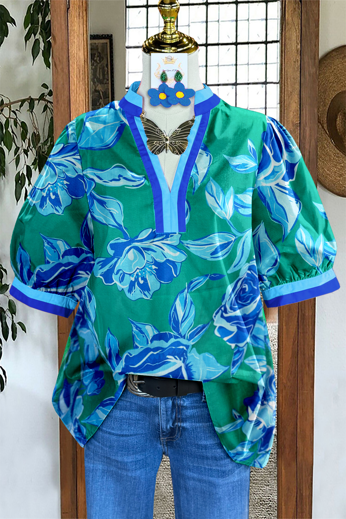 We're glad you've clicked on our new leisurwear blouse as we're really into its classic vibes! The v neck and short sleeve cut make this a great choice for any stylish girl.