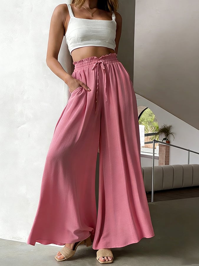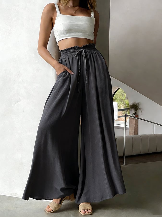 Women's casual cotton and linen solid color pants