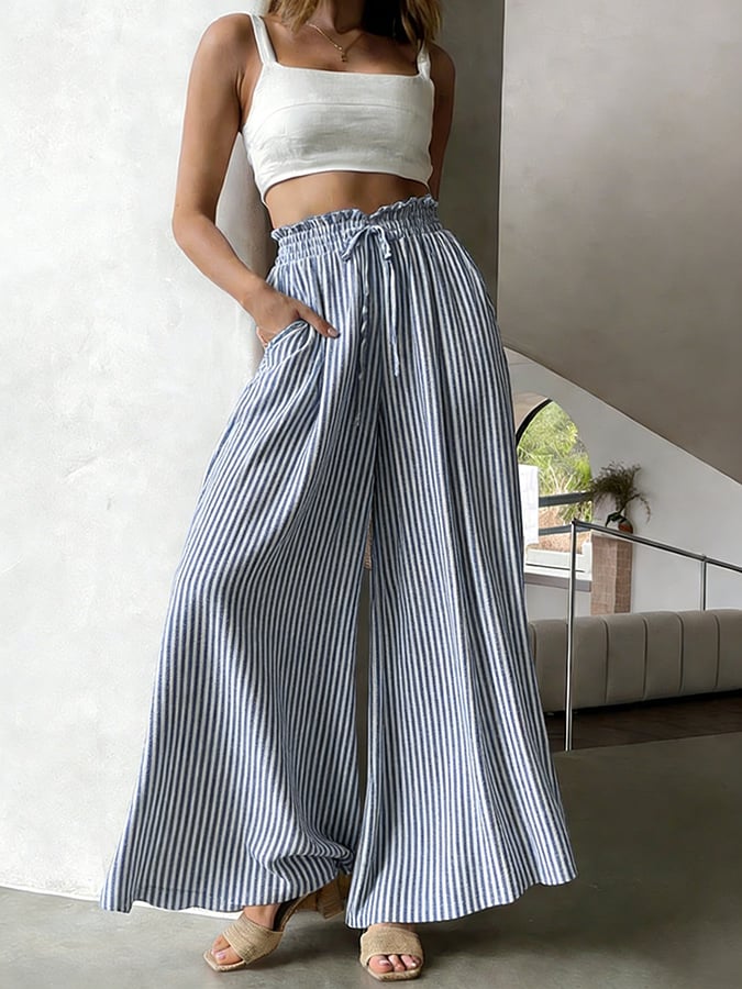 Women's casual cotton and linen striped pants