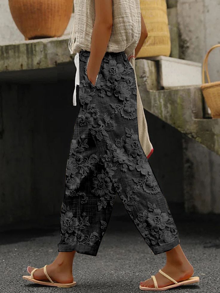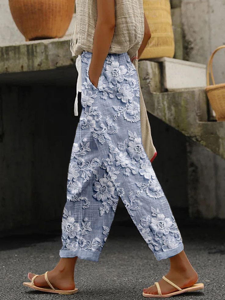 Women's Casual Floral Embroidery Print Pants